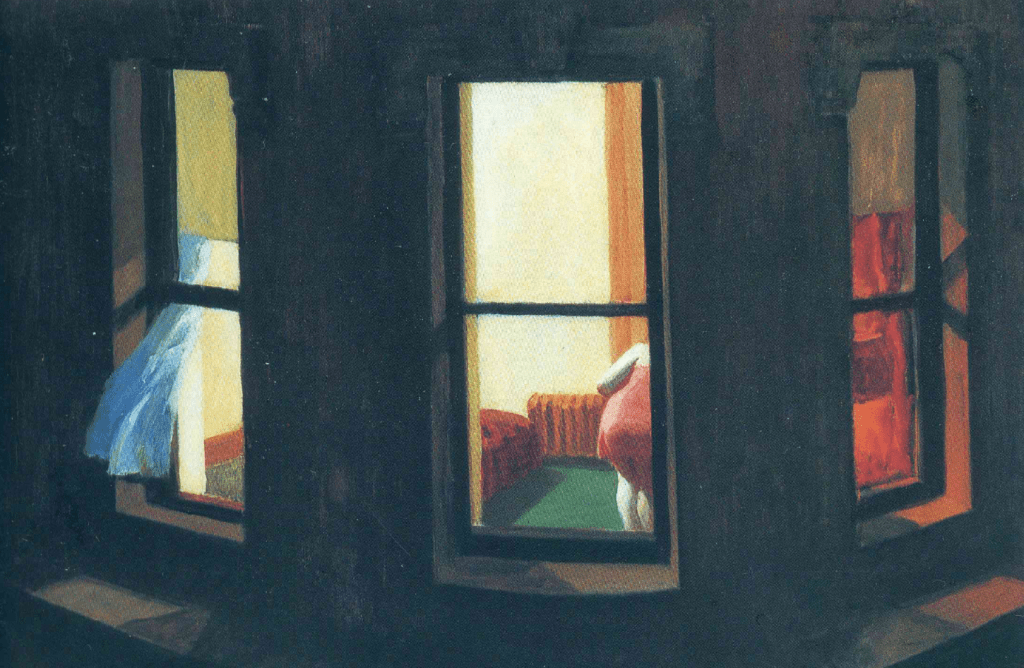 Antes de que los protagonistas se conozcan e intimen ya vamos asumiendo nuestro rol voyerista en esta película, ya que entramos en esos pisos pequeños y llenos de gente: la familia propietaria, sus familiares y/o amigos y los matrimonios que alquilan las pequeñas habitaciones. La sensación de estar espiando se acentúa por los planos, que muestran a menudo escenas parciales, cortadas por marcos de puertas o ventanas o reflejadas en espejos. Los vigilamos, pero no de cerca, esos elementos nos colocan a una cierta distancia.